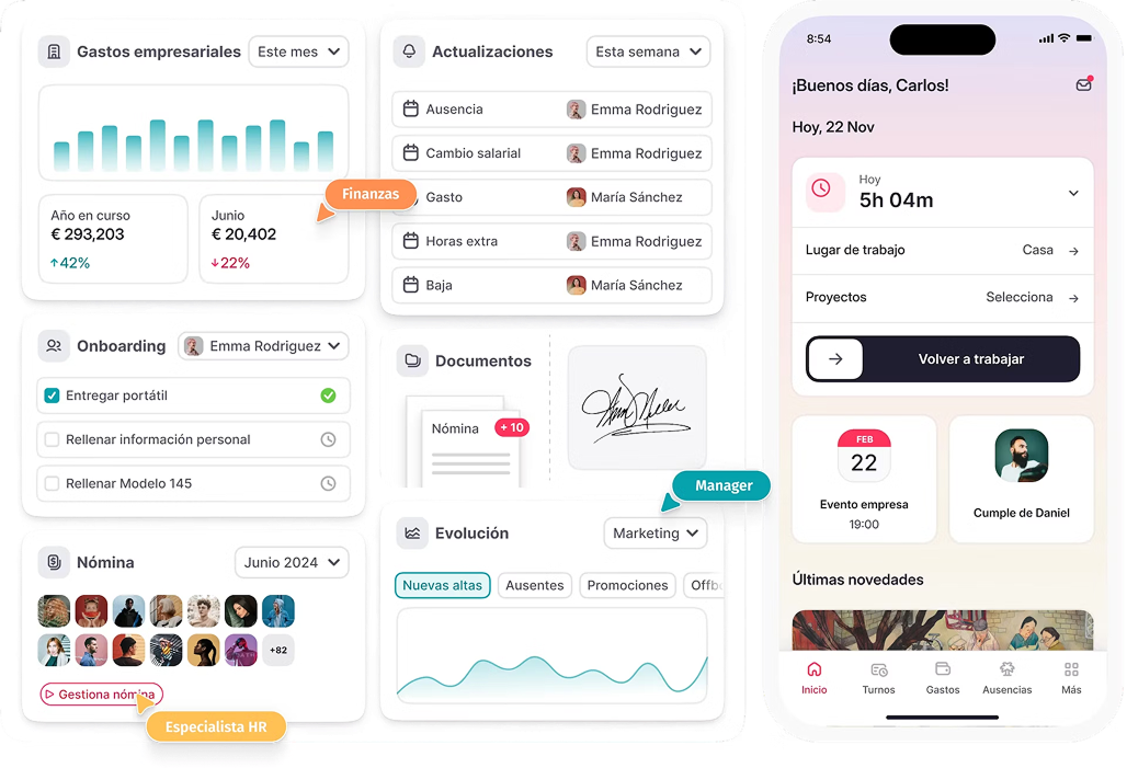 De la mano de Factorial, el software integral de RR.HH., te ayudamos a digitalizar y automatizar operaciones, impulsar el desarrollo del talento y garantizar eficiencia, cumplimiento y crecimiento organizacional.